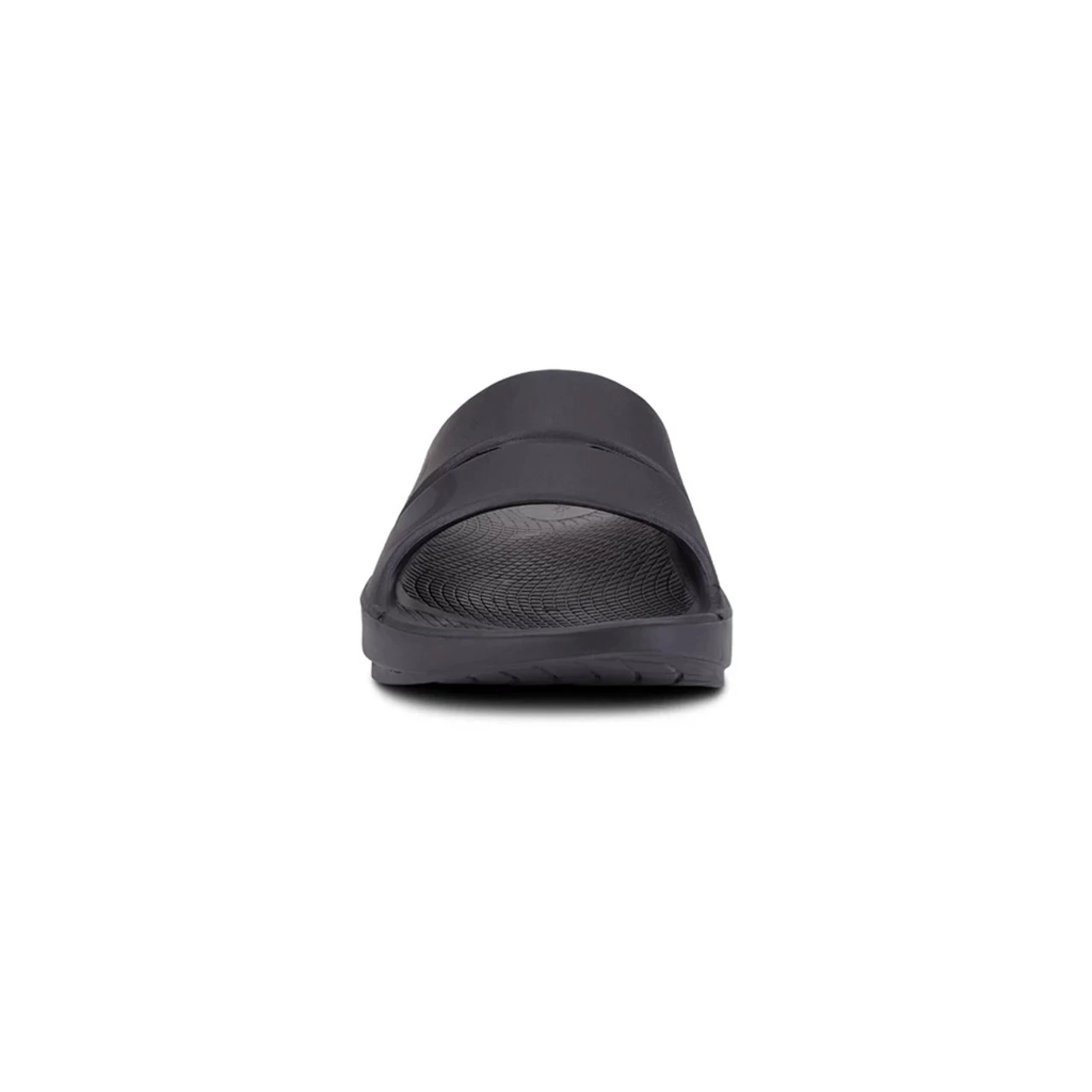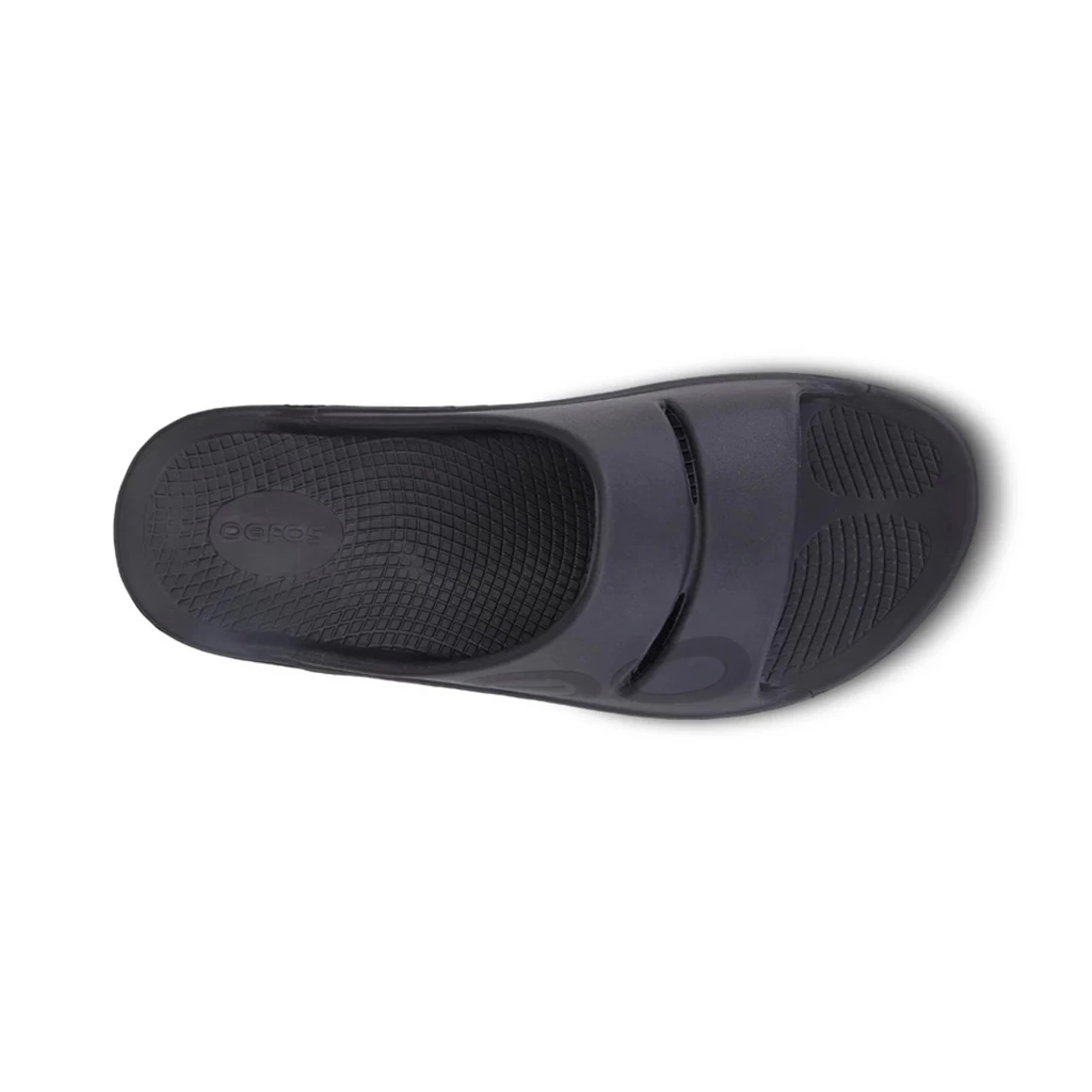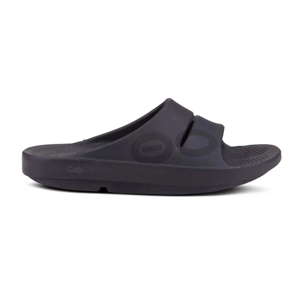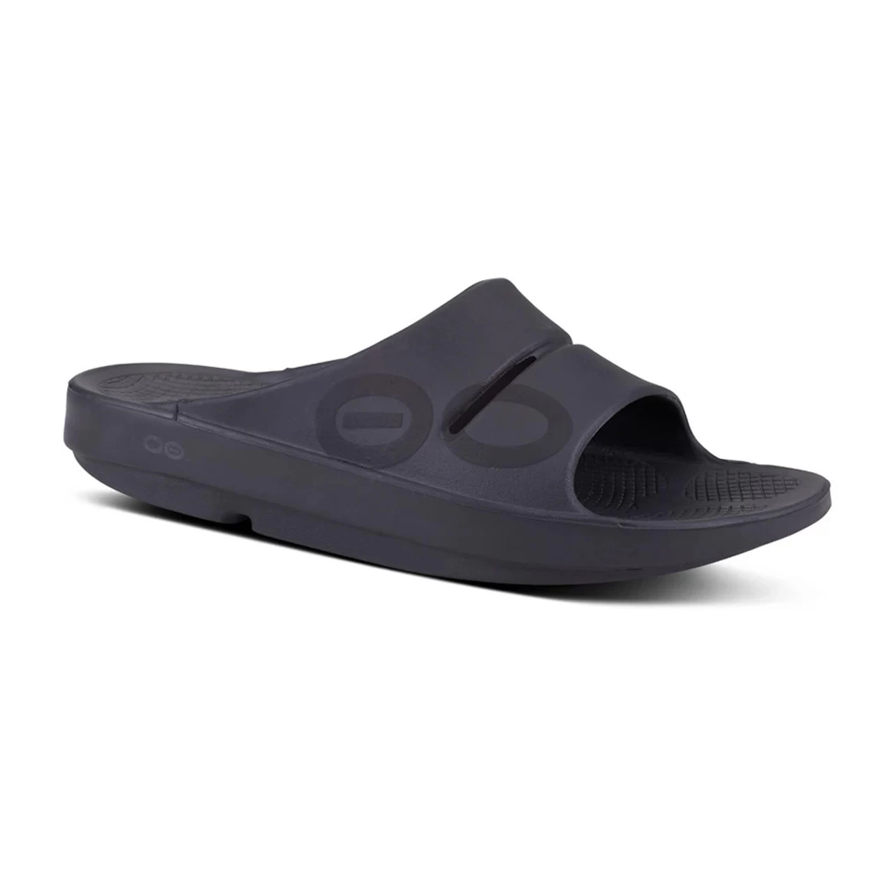 The OOFOS OOahh is a comfortable and supportive slide sandal that features a bold, hand painted design on the strap. This sporty slide is a great finishing touch to any summer wardrobe.
