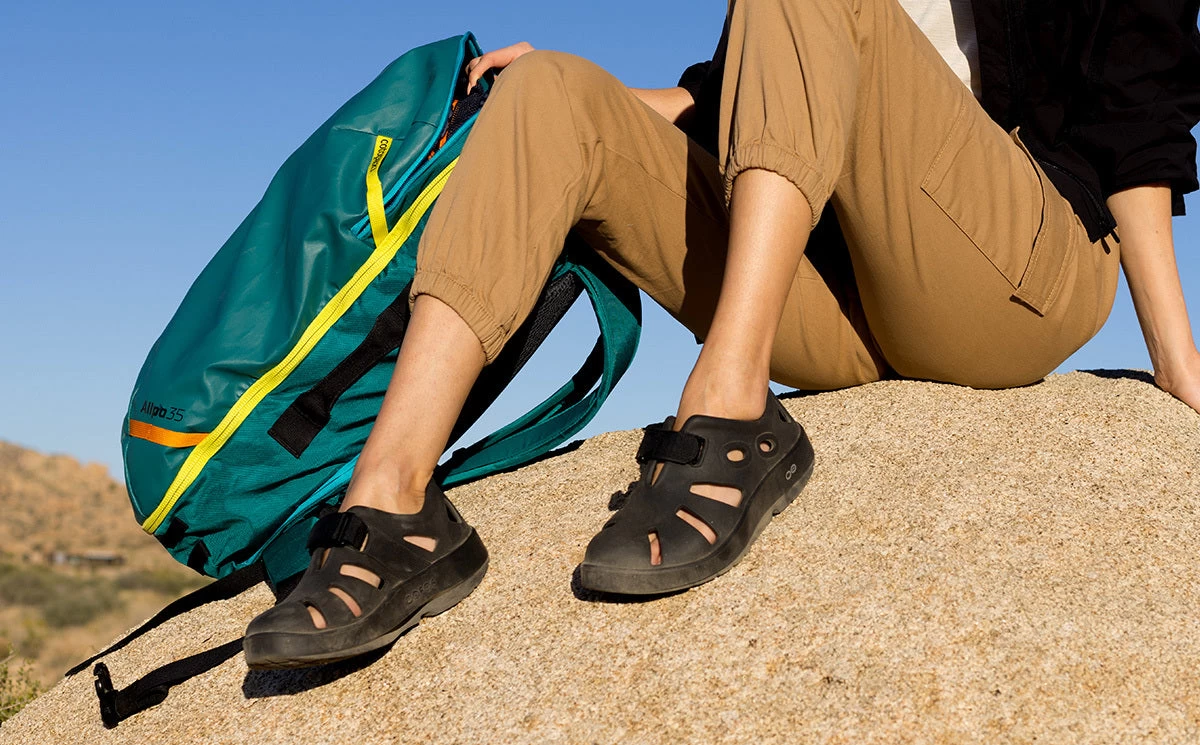 Introducing OOcandoo. Travel-ready, OOfoam™ technology and the patented OOFOS footbed take on a new versatile, lightweight and flexible design. The addition of a hook and loop fastener means you can easily slide these on while maintaining a secure fit for everything from creek crossings to global traveling. From post-hike campsite to urban adventures, the OOcandoo brings Active Recovery and the ultimate OOfeel to any excursion.
